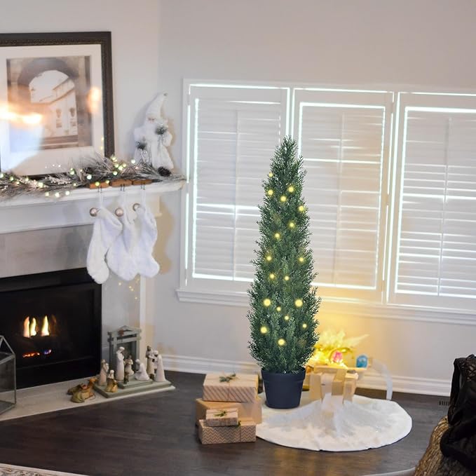- 【Evergreen at All Seasons】Artificial outdoor plants evergreen cedar tree with 3 sizes (3Ft/4Ft/5Ft), you can choose any size, including a black pot. HAIHONG cypress tree has lush green leaves, exuding natural beauty and elegance. The leaves are carefully crafted and pay great attention to details, making them lifelike with real cedar leaves. Whether it's autumn with fallen leaves or winter with snow, it always catch your eyes.