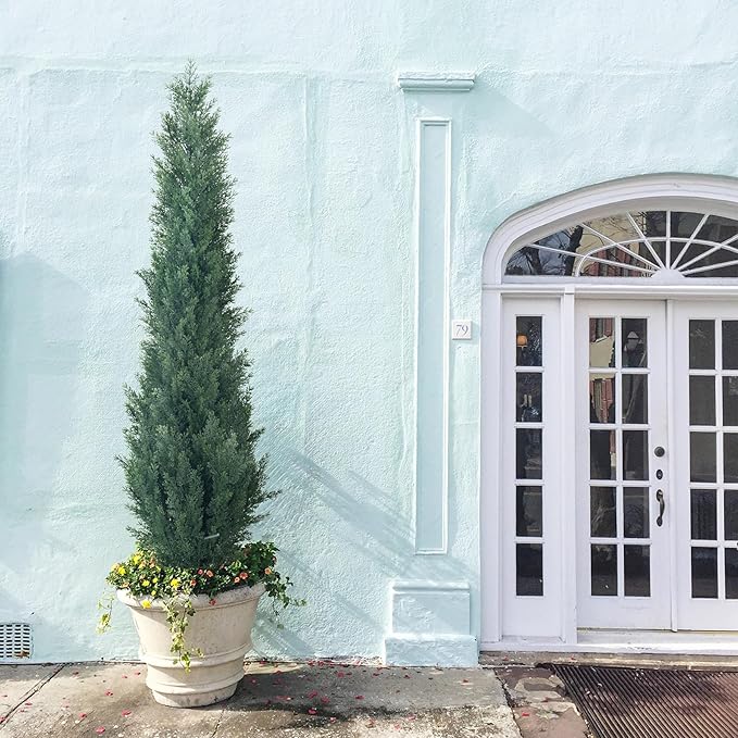 - 【 Durable Home Aesthetic Decor】Fake plant boxwood cedar tree with high-quality, UV resistant plastic leaves, carefully designed to withstand various outdoor weather conditions, including rain and sunlight. This extraordinary durability ensures that the tree maintains its vibrant color and overall appearance for a long period of time. In addition, the synthesized cypress tree consists of two parts, which can be easily assembled in 3 seconds, contributing to the home aesthetics of the tree.