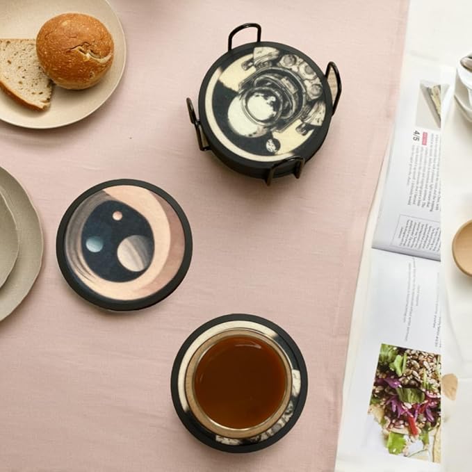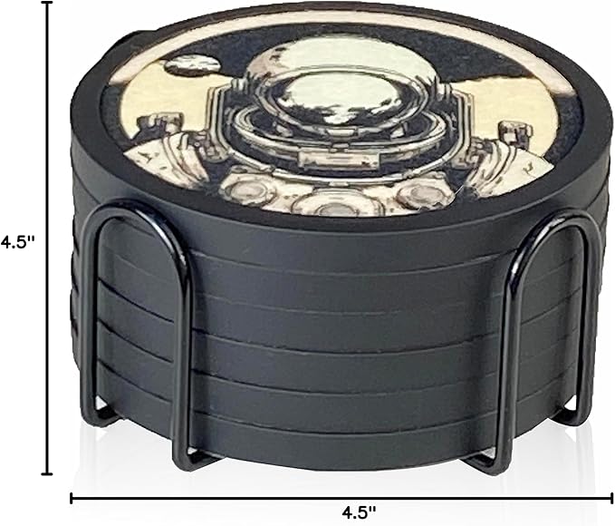 Absorbent Coasters for Drinks with Holder - 6packs, Silicone Coaster with Soft Felt Insert (4.3 inch Coasters with 4.5 inch Holder, Dual-Sided Space -Themed Patterns)