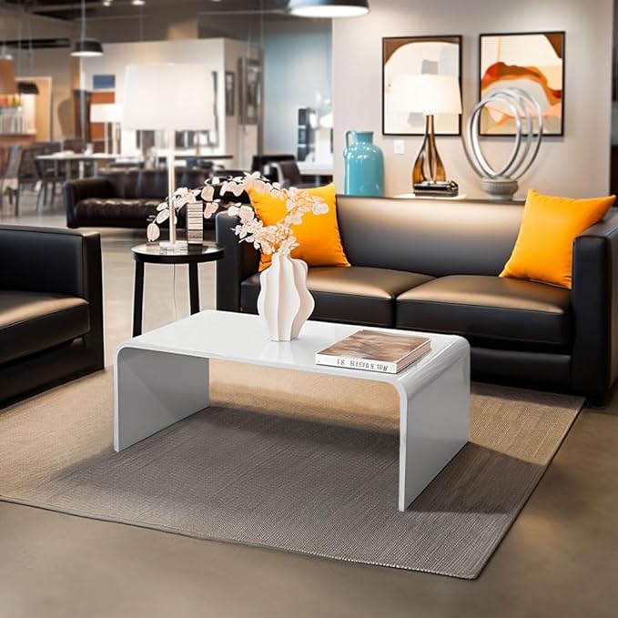 32 Inch Ceramic-Gloss White Waterfall Rectangle Coffee Table,Morden Afternoon Tea Table, Stubborn Stains Resistance,Easy Clean, Middle Size Table(32 * 16 * 16) fit for 2 seat Sofa