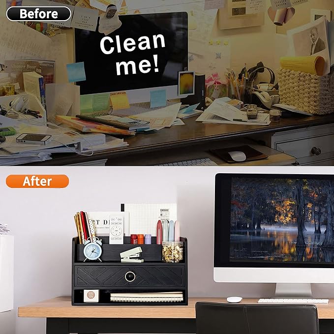 - EXQUISITE APPEARANCE: This black desk organizer has a modern and elegant appearance design, which can help you and your family eliminate the troubles of daily clutter. It can help you create a designated workspace that is both functional and aesthetically pleasing