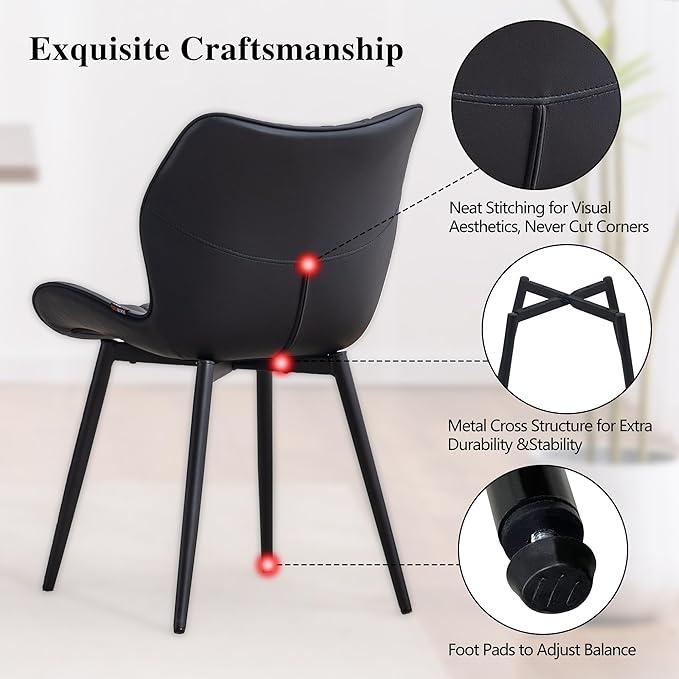 YOUNIKE Dining Chairs Set of 2, Upholstered Faux Leather Kitchen & Dining Room Chairs, Modern Living Room Bedroom Side Chairs with Wide Wing Back and Adjustable Metal Legs, Black