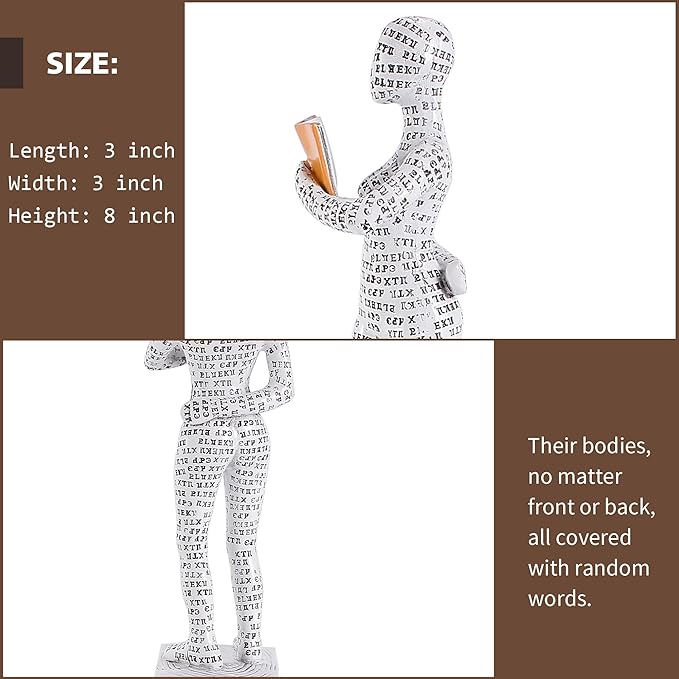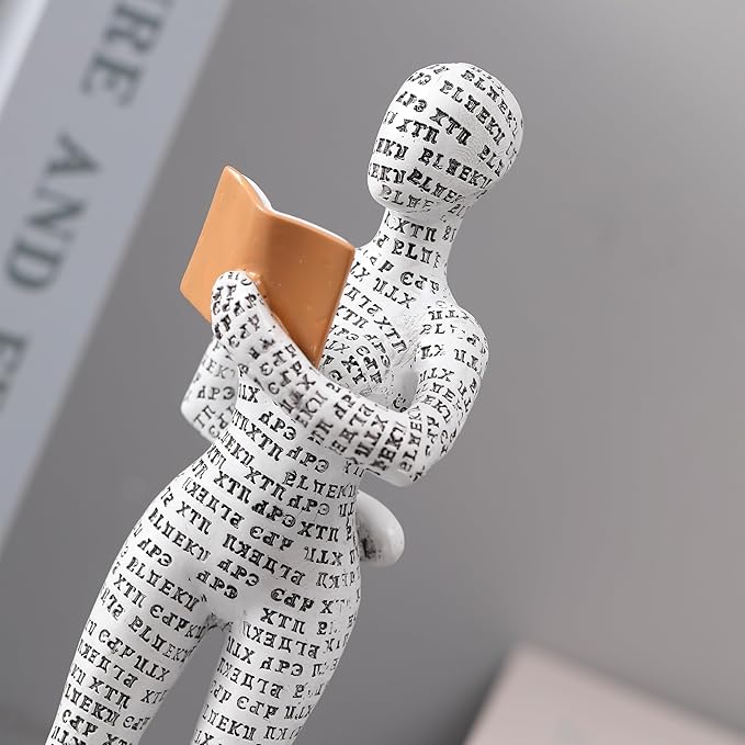 - [AESTHETIC DECOR] The reading women statue will be a special decor in your dining room or living room,office or bedroom, espacially fits on shelf and table. This sculpture looks like a woman reading a book. It is worth mentioning that this woman is covered with letters, which more intuitively shows the beauty and power of intellectual women.