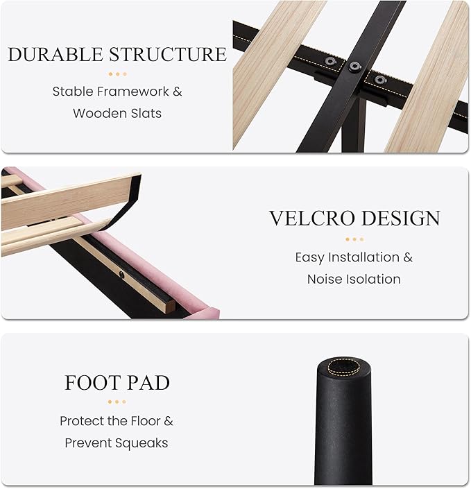 - Modern Wingback Headboard: The queen bed frame is beautifully upholstered in soft velvet and features a wingback headboard design, adding a stylish touch of glamour to any home decor
