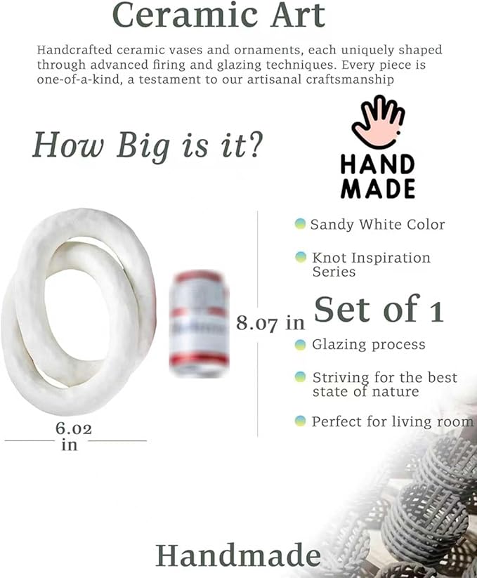- Thoughtful Artistic Gift: Perfect for weddings, housewarmings, holidays, or any art lover, this handcrafted ceramic knot sculpture makes a meaningful and stylish gift.
