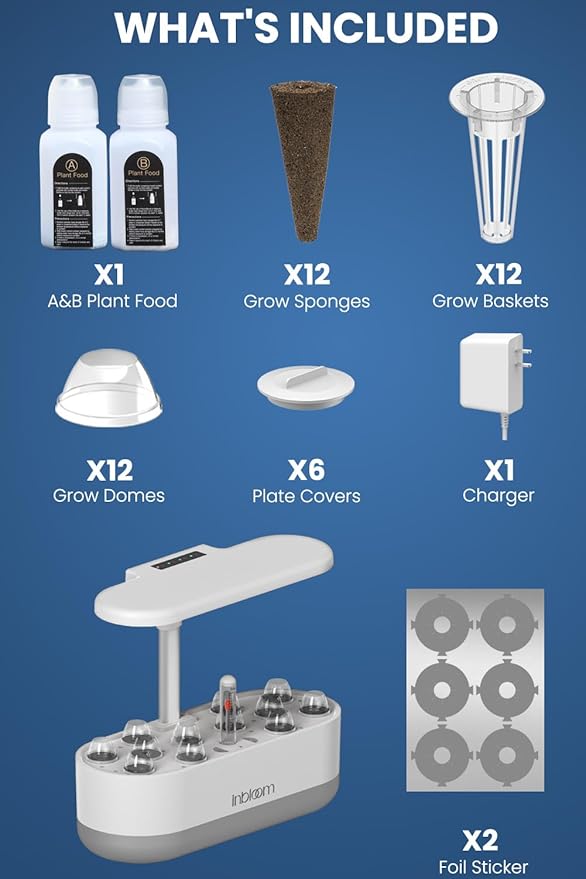 inbloom 12 Pods Hydroponics Growing System Kit, Herb Garden Planter Indoor Kit, Indoor Gardening Hydroponics Growing System with Pods, 4.2L Water Pump, Height Adjustable, Gifts for Woman, Black
