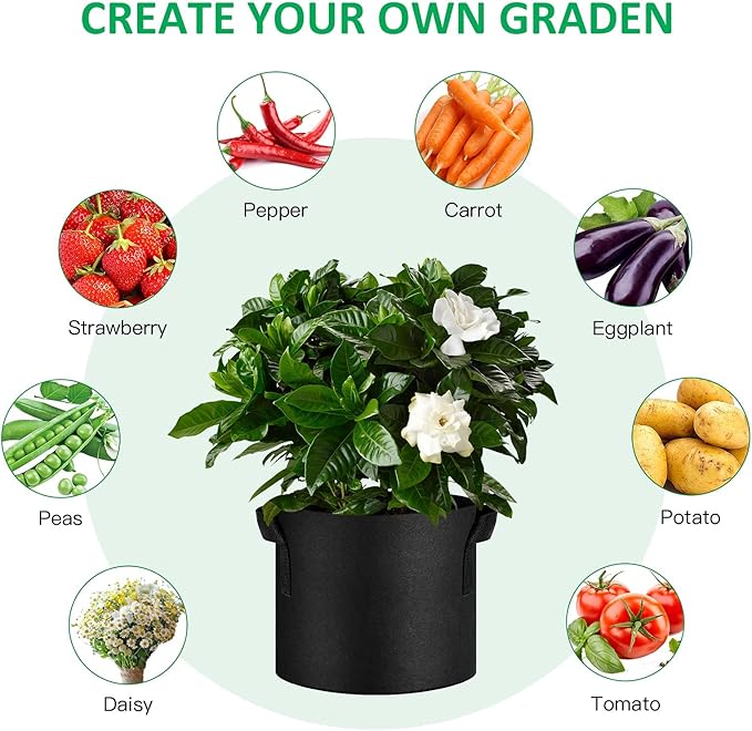 - Pack size: 12 packs, 15 gallons black grow bag with handle, 15 gallon pot size: 19.7"diameter x 11.8" height