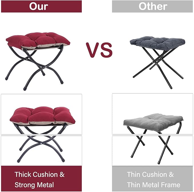 - LAZY CHAIR WITH OTTOMAN: The leisure chair comes with a footstool that can be quickly folded when not in use for easy storage. You can rest on a footstool, place the stool next to the sofa and end table in the living room as a footboard to relax your feet, or even place it in the hallway or doorway and sit on a small stool while changing your shoes.