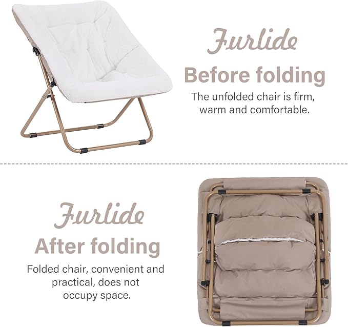 Saucer Chair, Comfy Bedroom Chairs, Oversized Folding Faux Fur Chair, Foldable Metal Frame Chair for Bedroom, Study, Playroom (White)