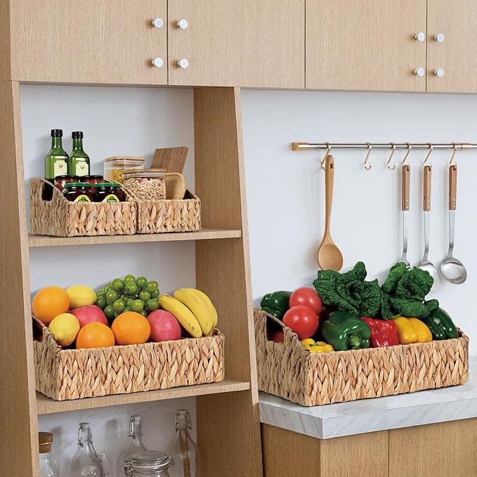 - GREAT VERSATILITY: Versatile pantry baskets provide you with a simple yet elegant way to neatly store and organize spices, vegetables, canned foods, bottles, magazines, clothes, scarves, gloves, laundry, kids' toys or other household items
