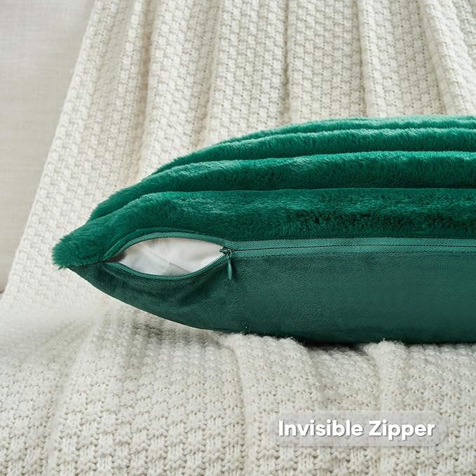 - Furry Material:The front of the pillow cover is fluffy and soft faux rabbit fur striped, No shedding of material. Velvet on the back, smooth and cozy Not fade resistant. A hidden built-in zipper on the side of the pillows cases for easy insert or remove pillow inserts