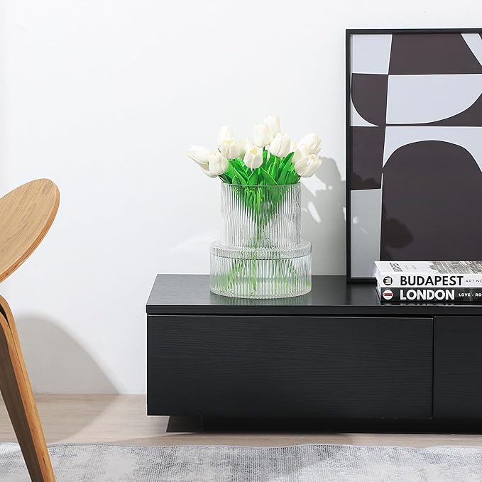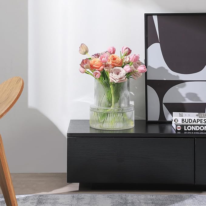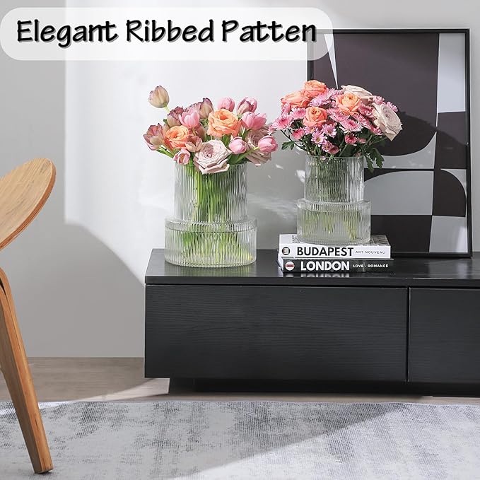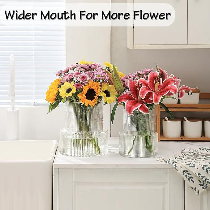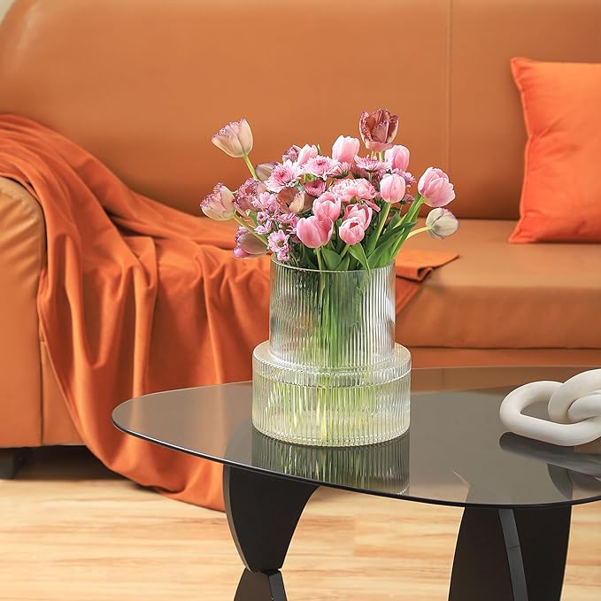 - Vases for Flowers: YANWE1 Ribbed Vase is perfect for displaying your flower bouquets. This glass vase adds a touch of elegance and simplicity to your flower. Beautiful decoration for living room, dining room table, entryway and coffee table (专利产品)