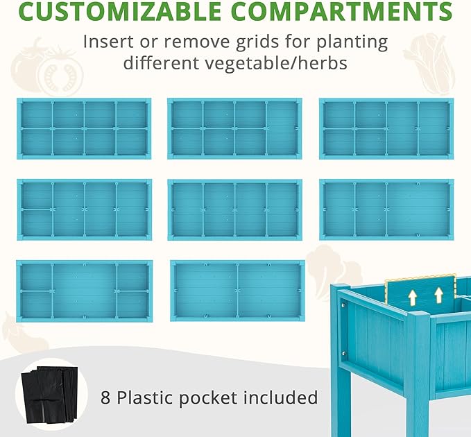 - Customizable Garden Dividers: Each divider grid is removable to meet diverse gardening needs; Allows for the cultivation of different herbs and plants in separate compartments; Equipped with plastic pockets in the smallest grids to reduce nutrient loss