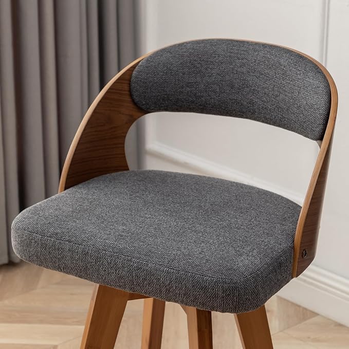 Barstools Set of 2,Counter Height Bar Stools for Kitchen Island,26.8 Inch Modern Upholstered Bar Chair, Swivel Counter Stools with Wood Back and Bamboo Legs (Darkgray-Fabric)