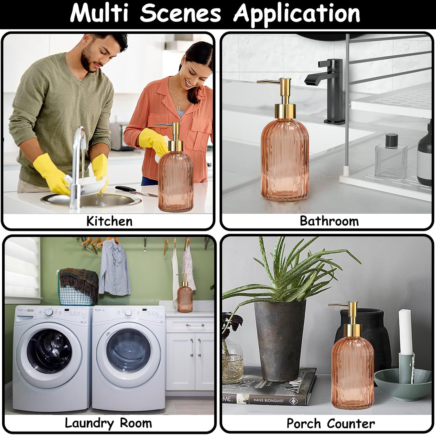 - Glass Soap Dispenser with Gold Pump: Our orange glass soap dispenser is made of high-quality lead-free glass, naturally and safely filled with various indoor liquids for daily use. Glass lotion bottle is reusable, refillable, environmentally friendly, and recyclable.