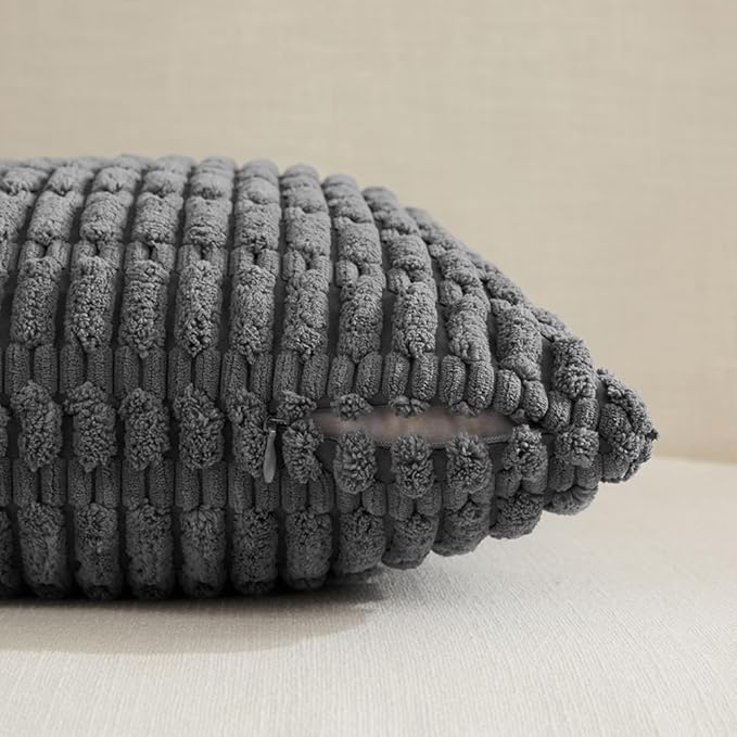Fancy Homi 4 Packs Dark Grey Decorative Throw Pillow Covers 12x20 Inch for Couch Bed, Rustic Modern Farmhouse Boho Home Decor, Soft Plush Corduroy Gray Cute Square Accent Cushion Case 30x50 cm