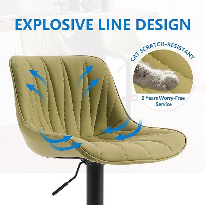 - |ADJUSTABLE & SWIVEL FUNCTION|: This style of bar chair can flexibly adjust the height through the gaslift and can also rotate 360°. There is a rubber ring on the bottom to prevent scratching the floor, and the footrest can provide support for your feet