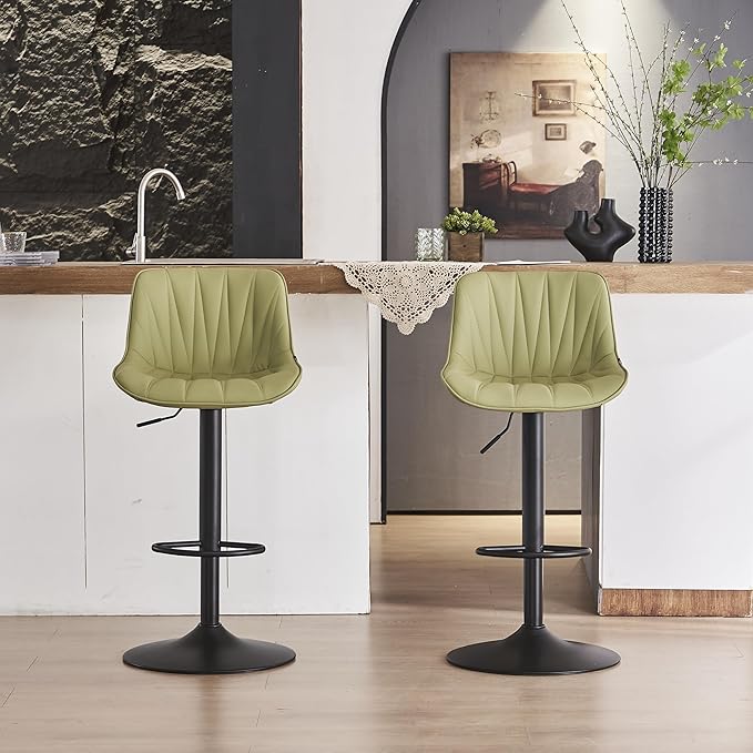 YOUNIKE Bar Stools Set of 2 for Kitchen Island, Grass Green Faux Leather Padded Counter Height Stools, Adjustable Swivel Barstools with Back, Modern Tall Stools with 300LBS Support