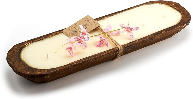 - {Add Hygge Style to a Space} This adorable wooden dough bowl candle brings rustic charm to your living room, bedroom, or office. The 6 wick candle warmer contains 32 oz. of all-natural wax. The result yields sea salt & orchid-scented aromatherapy candles for relaxation that add gentle fragrance to your chosen space. The hand-poured odor neutralizer, enclosed in a Spanish Oak bowl, is 100% American made.