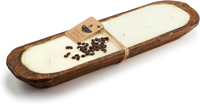 - {Add Hygge Style to a Space} This adorable wooden dough bowl candle brings rustic charm to your living room, bedroom, or office. The 6 wick candle warmer contains 32 oz. of all-natural wax. The result yields vanilla latte-scented aromatherapy candles for relaxation that add gentle fragrance to your chosen space. The hand-poured odor neutralizer, enclosed in a Spanish Oak bowl, is 100% American made.
