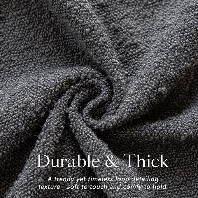 Foindtower Pack of 2 Textured Boucle Throw Pillow Covers Accent Solid Decorative Pillow Cases Cozy Woven Couch Cushion Case for Sofa Bedroom Living Room Home Decor, 20 x 20 Inch,Dark Grey
