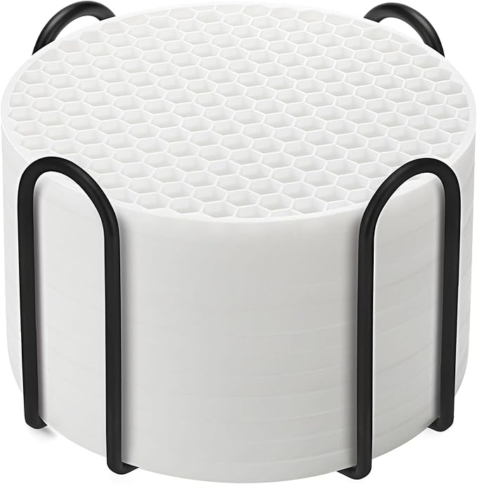- HEAT RESISTANT-NON SLIP:It is an excellent with holder drink coasters for tabletop protection Mat, Extreme temperatures range from -104°F-446°F(-40°C to 230°C),Can be used in more occasions, keep the desk clean.The honeycomb design gives the heat pad a stronger grip which can ensure nothing slide off.