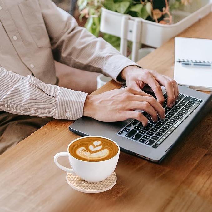 - HEAT RESISTANT-NON SLIP:It is an excellent with holder drink coasters for tabletop protection Mat, Extreme temperatures range from -104°F-446°F(-40°C to 230°C),Can be used in more occasions, keep the desk clean.The honeycomb design gives the heat pad a stronger grip which can ensure nothing slide off.