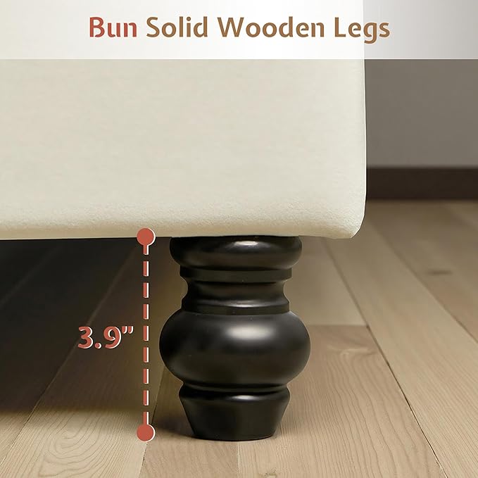 - 53" Sleigh Headboard: This upholstered bed frame features an elegant sleigh design with studded trim. Thoughtfully positioned deep tufted buttons provide both comfort and excellent back support.