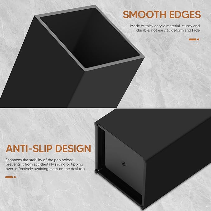 - 【Stylish & Professional】The sleek black color of our acrylic pencil holders exudes a sense of professionalism and sophistication. Whether you use them in your office, home, or classroom, they add a touch of elegance to any environment. Elevate the appearance of your desk and impress others with your attention to detail and refined taste. Experience the perfect balance of style and functionality with our black acrylic pencil holders.