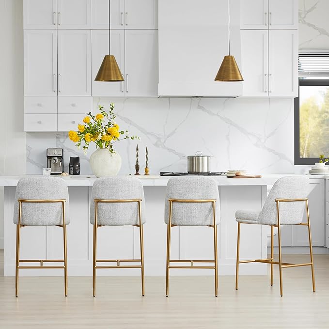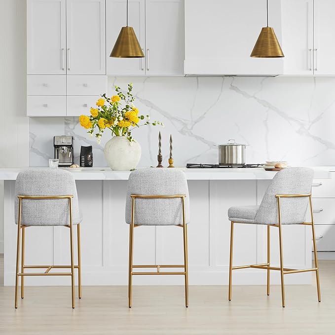 - Elegant Counter Stool: Gently curved backrest and cushy seat cushion, matched with a minimalistic metal base, our counter stool is a modern artwork. Comfortable foam covered with soft fabric or faux leather adds a polished presence to your counter.
