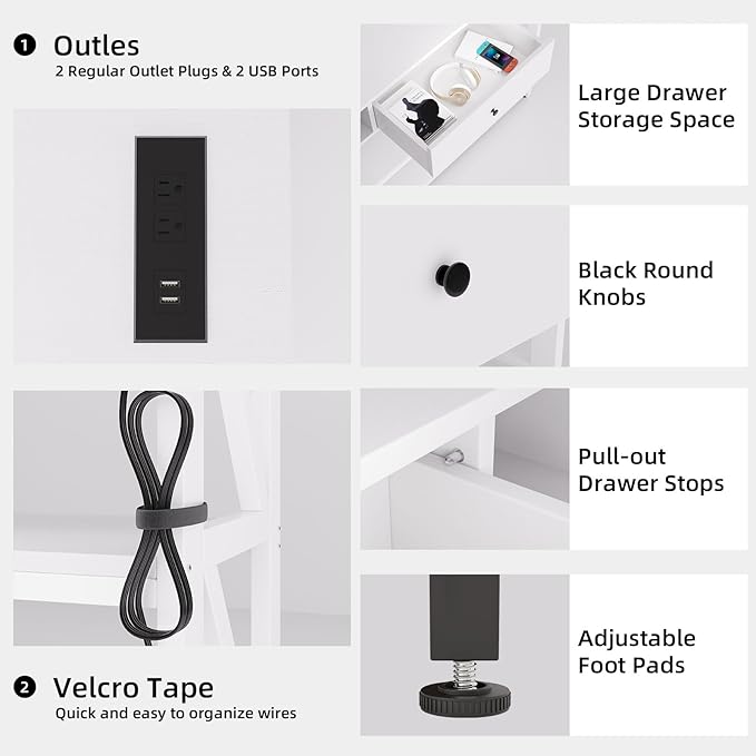 - Sofa Table with Charging Station: Console table offers you the convenience of 2 USB ports & 2 power outlets, which allow you to charge multiple electronic devices and household appliances, including cellphones, tablets, fan, lamps, coffee machines etc.