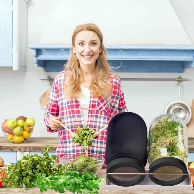 - MAKE SPROUT EASIER - Our sprouting stainless steel stand provides optimal drainage and airflow angles for jars, and keeps seeds&sprouts from rotting. Make your seeds sprout successfully every time, even a novice can sprout easily! Also, the shade sleeves will allow you to grow longer, straighter, and sweeter sprouts.