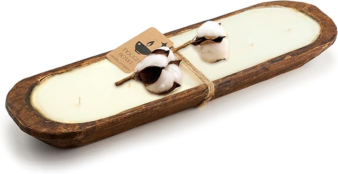 - {Add Hygge Style to a Space} This adorable wooden dough bowl candle brings rustic charm to your living room, bedroom, or office. The 6 wick candle warmer contains 32 oz. of all-natural wax. The result yields clean cotton-scented aromatherapy candles for relaxation that add gentle fragrance to your chosen space. The hand-poured odor neutralizer, enclosed in a Spanish Oak bowl, is 100% American made.