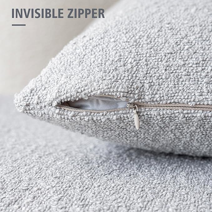 Foindtower Pack of 2, Decorative Textured Boucle Throw Pillow Covers Accent Solid Pillow Cases Cozy Soft Couch Cushion Case for Chair Sofa Bedroom Living Room Home Decor 22 x 22 Inch Light Grey