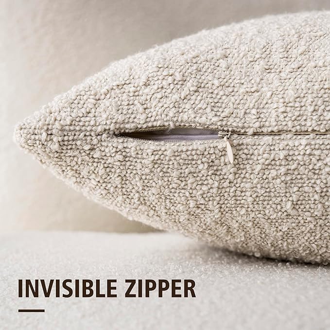 Foindtower Pack of 2, Decorative Textured Boucle Throw Pillow Covers Accent Solid Pillow Cases Cozy Soft Couch Cushion Case for Chair Sofa Bedroom Living Room Home Decor 22 x 22 Inch Ivory Beige