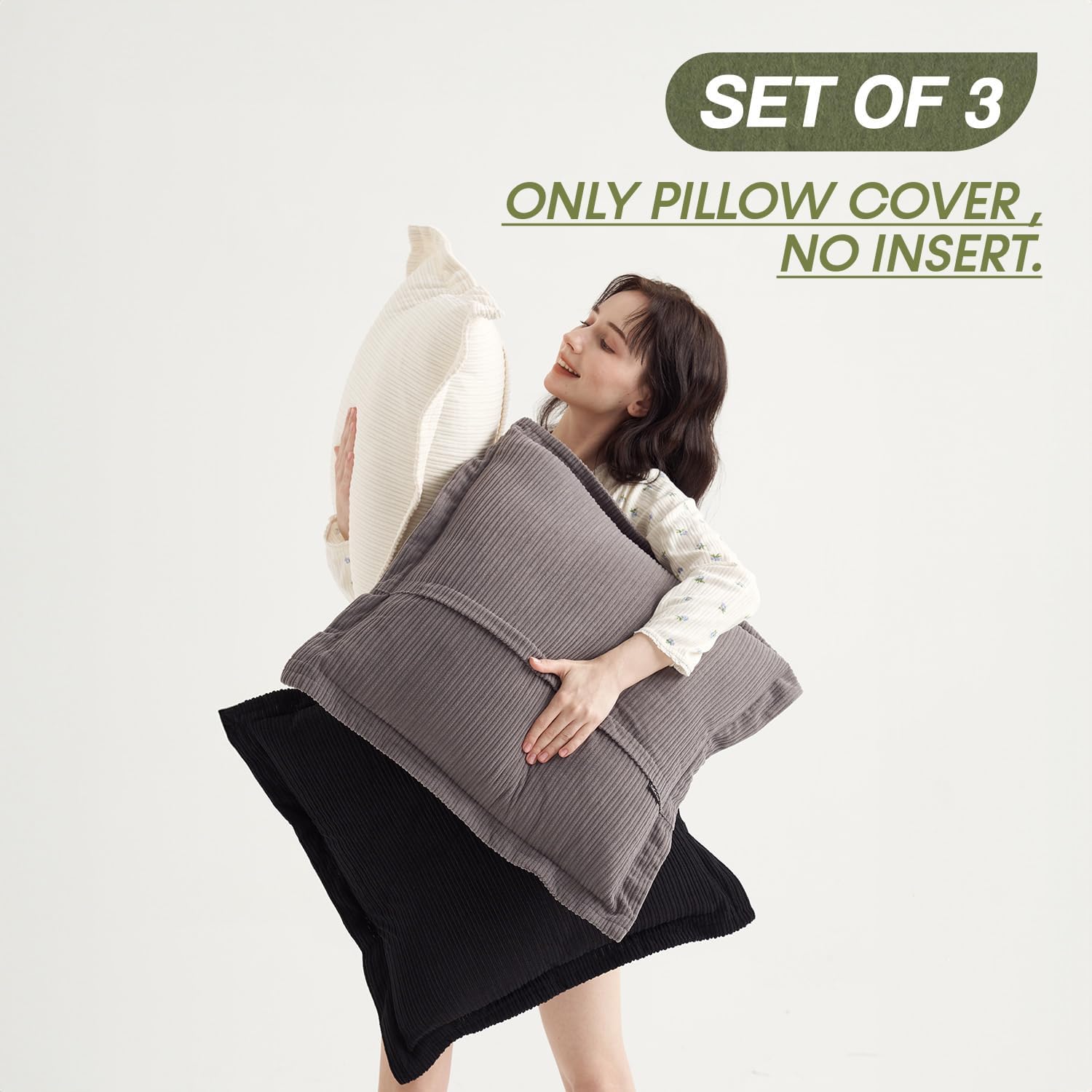 - COCO TOP: Trio pack of handcrafted 20x20" corduroy pillow covers in striking black, pristine white, and elegant gray. Vintage stripes for a timeless touch. (Note: Covers only, no inserts. Allow for a 2cm size variation.