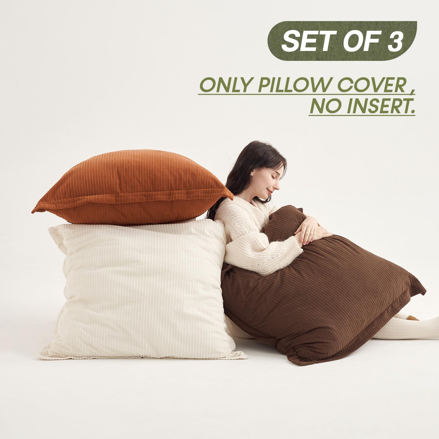 - COCO TOP: Enhance your space with our set of three 28x28" handcrafted corduroy pillow covers in deep coffee, sweet caramel, and crisp white, accented with vintage stripes. (Covers only; no inserts. Allow for 2cm size variation