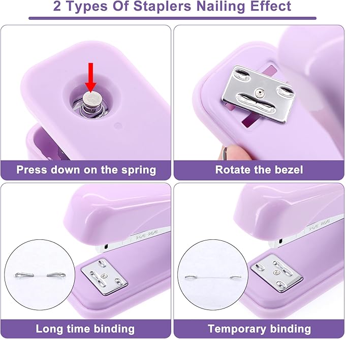 - REASONABLE DESIGN: The office organization is designed with smooth rounded edges that won't scratch hands;The stapler has 2 types of bindings that can be changed, so you can switch the form freely; The hole punch is made of soft silicone, which is comfortable to touch and protecting your hands.