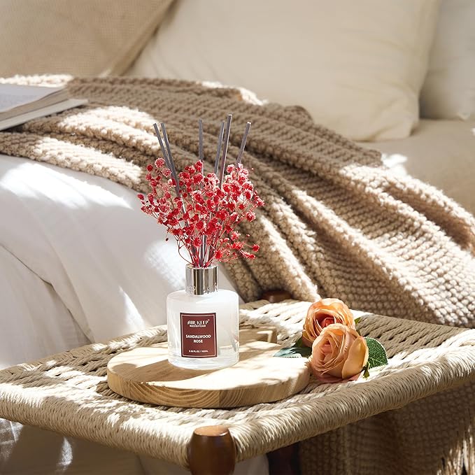 Airkeep Reed Diffuser Set,3.38 fl oz (100 ml) - Sandalwood Rose Oil Diffusers with 8 Reed Sticks,Home Fragrance Reed Diffuser for Bathroom Shelf Decor