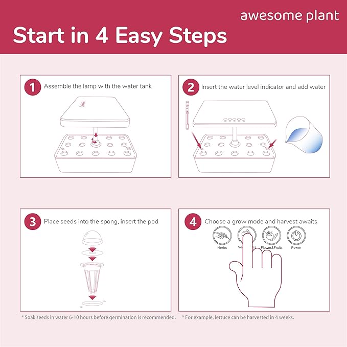 - PERFECT GARDENING GIFT FOR ALL AGES: Awesome Plant 14Pro comes with a LED grow light system, 14 grow pods, 3.4 oz. plant food, 4 pod cover, 1 quick start guide, everything you need to grow your fresh herb, vegetables and flowers in your home