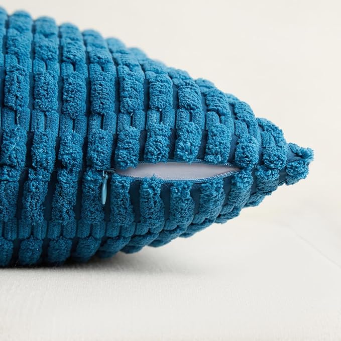 Fancy Homi 4 Packs Teal Big Decorative Throw Pillow Covers 24x24 Inch for Living Room Couch Bed Sofa, Rustic Farmhouse Boho Home Decor, Soft Striped Corduroy Square Cushion Case 60x60 cm