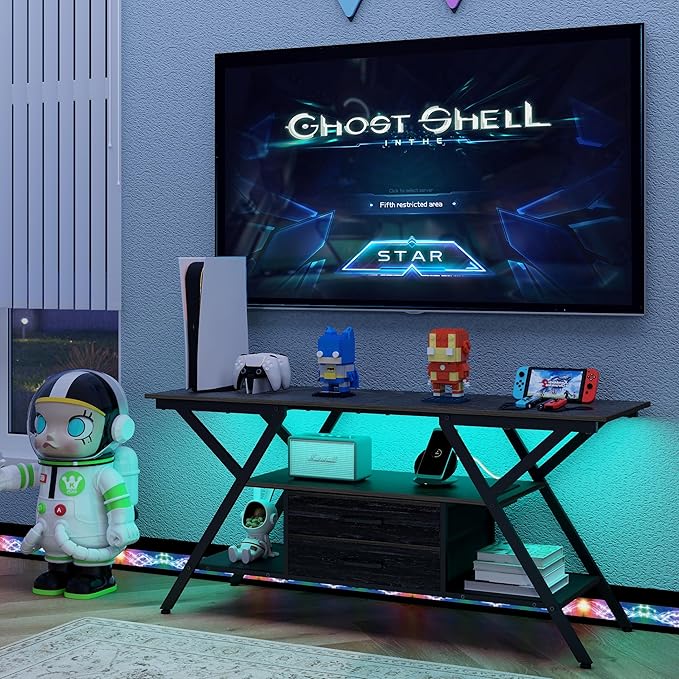 - LED Lights: The TV stand has LED lights on the top and sides, providing a warm and gentle glow to your living room. It creates a cozy atmosphere for you to enjoy movies or games