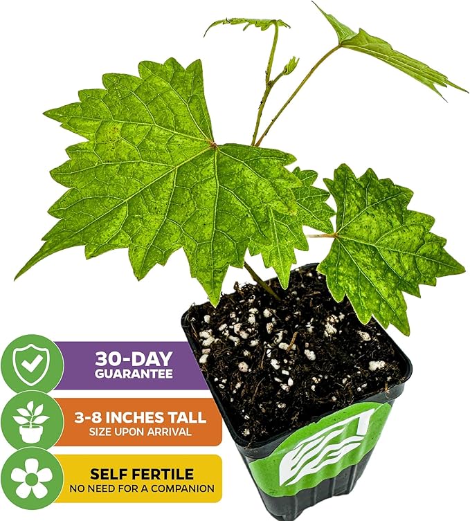 - SIZE UPON ARRIVAL: When your Southern Home Muscadine Grape plant arrives, you can expect it to be small, measuring between 3-8 inches in height. It comes potted in a 3-inch-deep pot, ensuring easy handling and transplanting as you begin the journey of nurturing this beautiful vine.