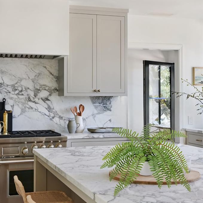 - 【Multi-scene Decoration Use】 Artificial fern is designed for outdoor & indoors decoration. These lifelike faux Boston ferns for outdoor planter large add a charming conception to your front porch, walkway, garden, kitchen,Office, windowsill, living room, bedroom, terrace and garden fence. Artificial ferns potted for outdoors large is very suitable for daily home garden decoration, birthdays, holidays, weddings, memorial places etc.