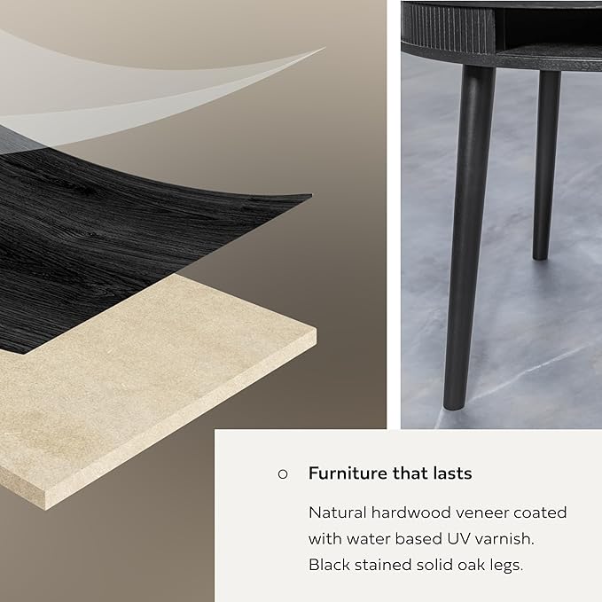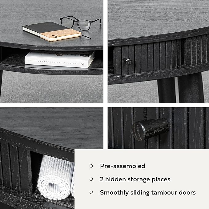 - ENJOY EFFORTLESS STORAGE of the round black dining table featuring 2 storage spaces hidden behind the sliding doors. The 4 seater round dining table (diameter 47‘’ x height 29.5’’) offers easy access to most frequently used tableware, serving utensils and entertainment essentials so you could have a clutter-free breakfast or dining atmosphere. You will receive 2 sets of door knobs - wood & messing.