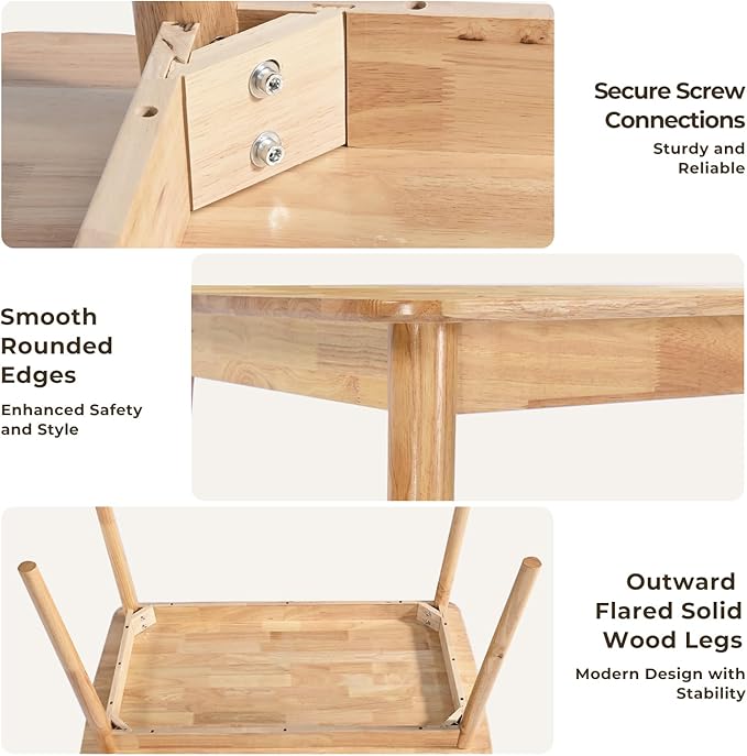 - Sturdy and Reliable: This 100% solid wood dining table is carefully selected from premium rubber wood, which makes it an ideal choice for daily use due to its excellent strength and durability. With a solid wood tabletop and 4 hardwood legs, the smooth surface of the tabletop makes it easier to clean and will not be easily scratched or dented.