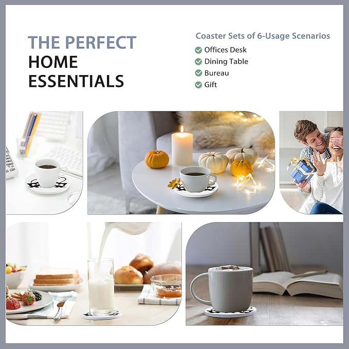 - 【Coaster with Metal Holder Set】The set includes 6 round ceramic coasters and metal coaster holder.