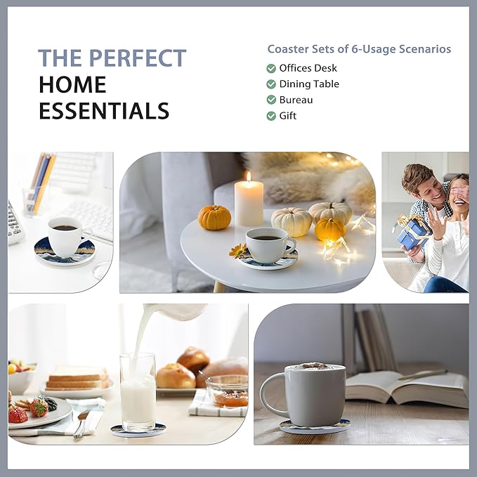- 【Water-absorbing Ceramics】These coasters are super water-absorbent, the cork back can avoid scratching your furniture and prevent coasters falling off the table.