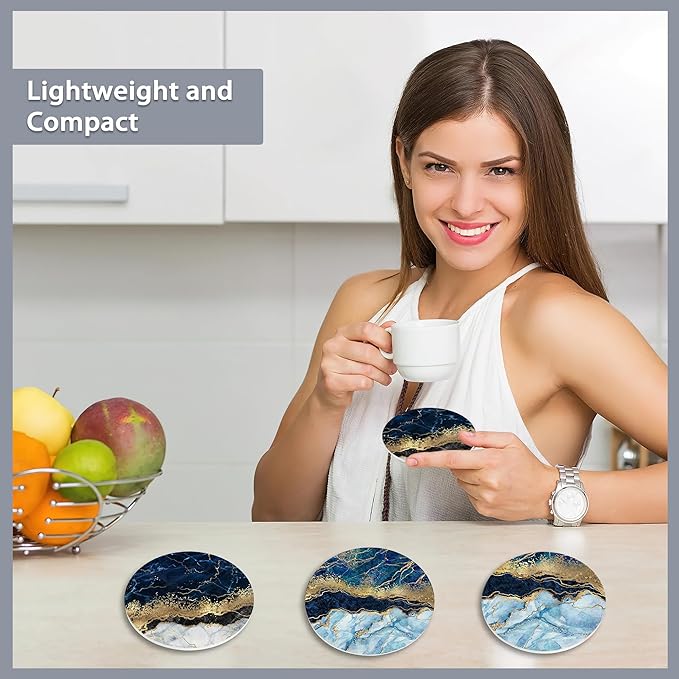 - 【Non Slip & Easy Clean】The coasters are smooth to the touch and measure 4 inches making it perfect for any beverage cup. Now you can confidently place your wet drinks or hot beverages on your coffee and dining tables. Simply clean them with a damp cloth and wipe them off within seconds.