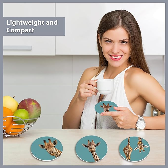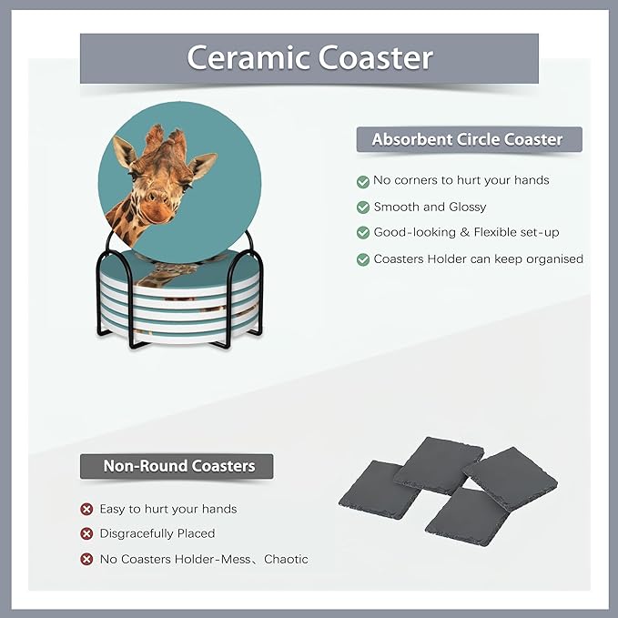 6 Pcs Coasters for Drinks with Holder,Funny Giraffe Absorbent Coaster with Cork Backing,Great Gift for Housewarming,Room Decor,Bar,Holiday Party